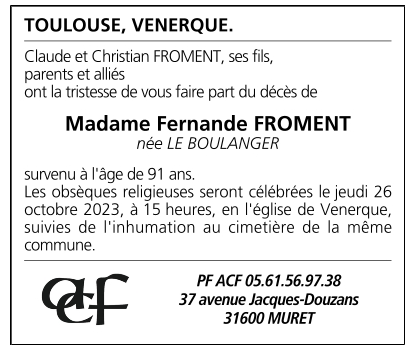 Veuve de Monsieur René FROMENT