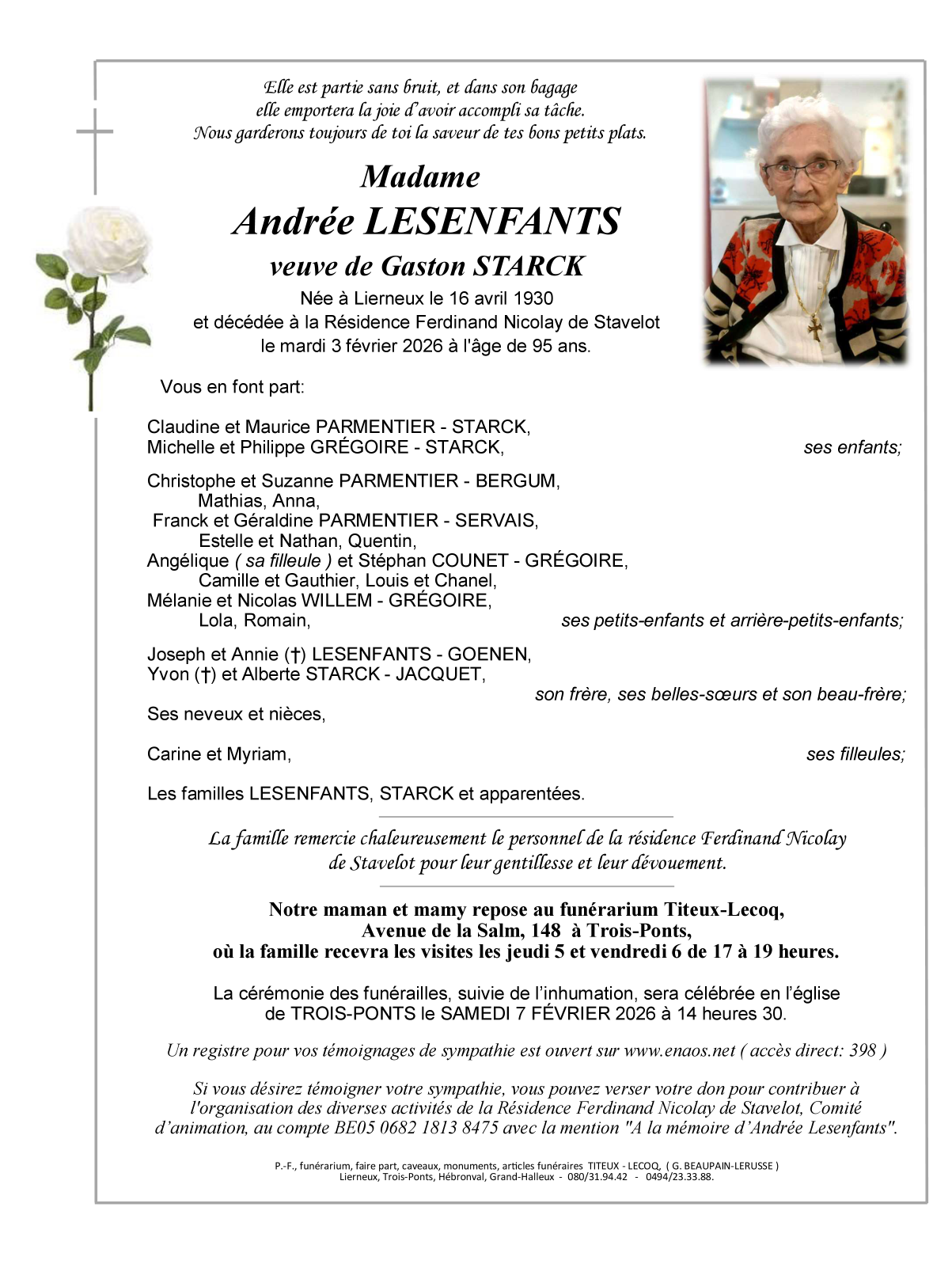 Overleden te Stavelot (4970) op dinsdag 3 februari 2026 op 95-jarige leeftijd