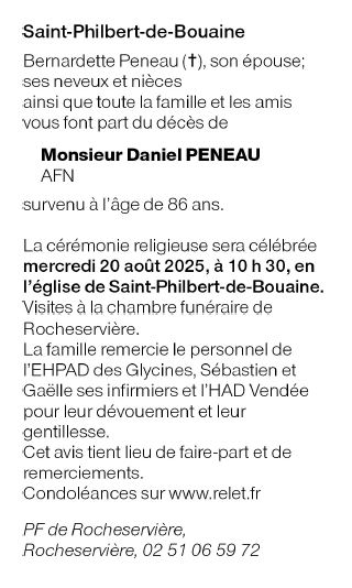 Overleden te Saint-Philbert-de-Bouaine (85660, Frankrijk) op vrijdag 15 augustus 2025 op 86-jarige leeftijd