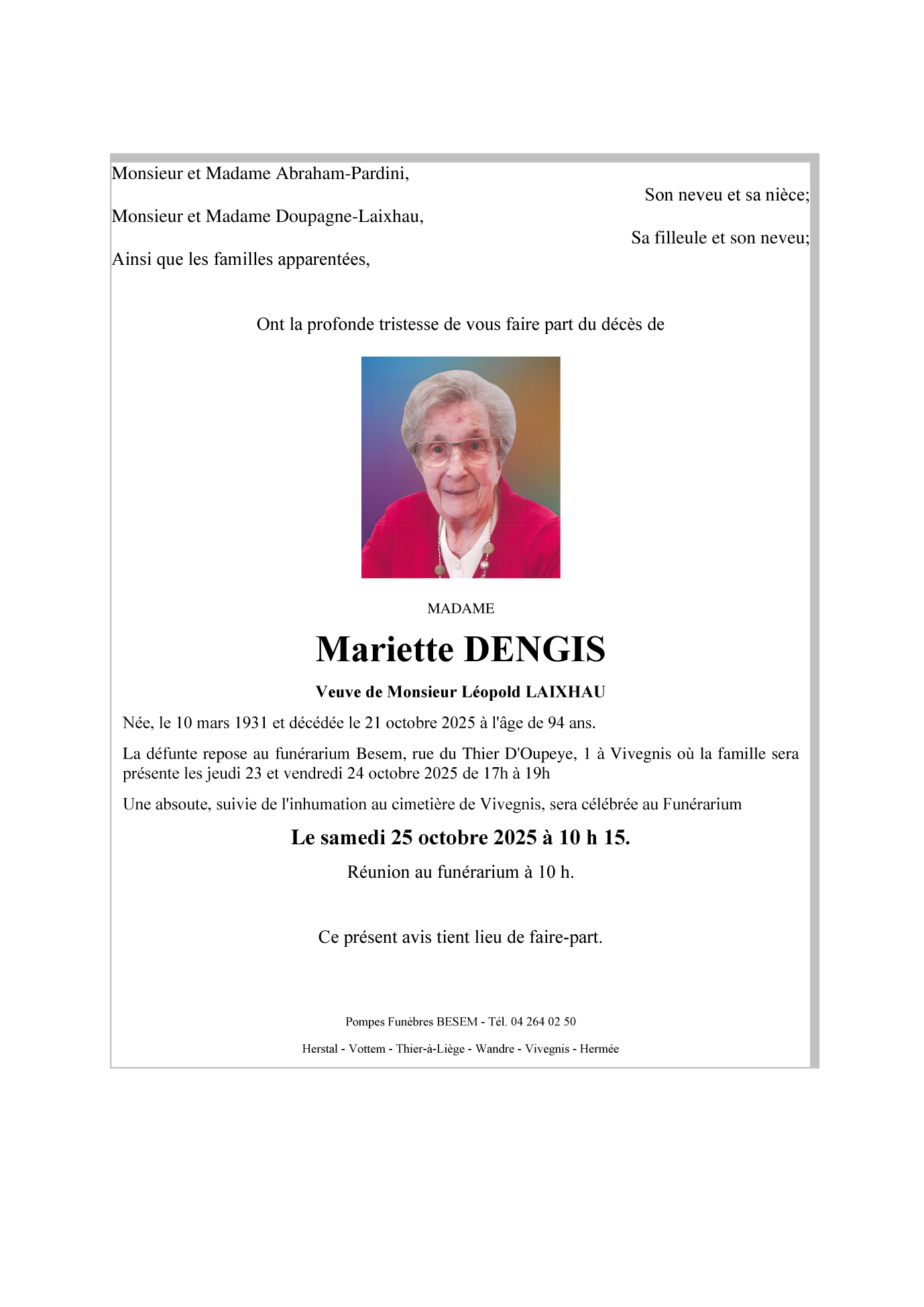 Overleden te Wonck (4690) op dinsdag 21 oktober 2025 op 94-jarige leeftijd