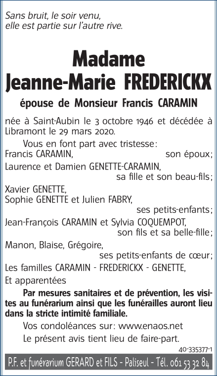 Décédée à Libramont (6800) le mardi 31 mars 2020 à l'âge de 73 ans