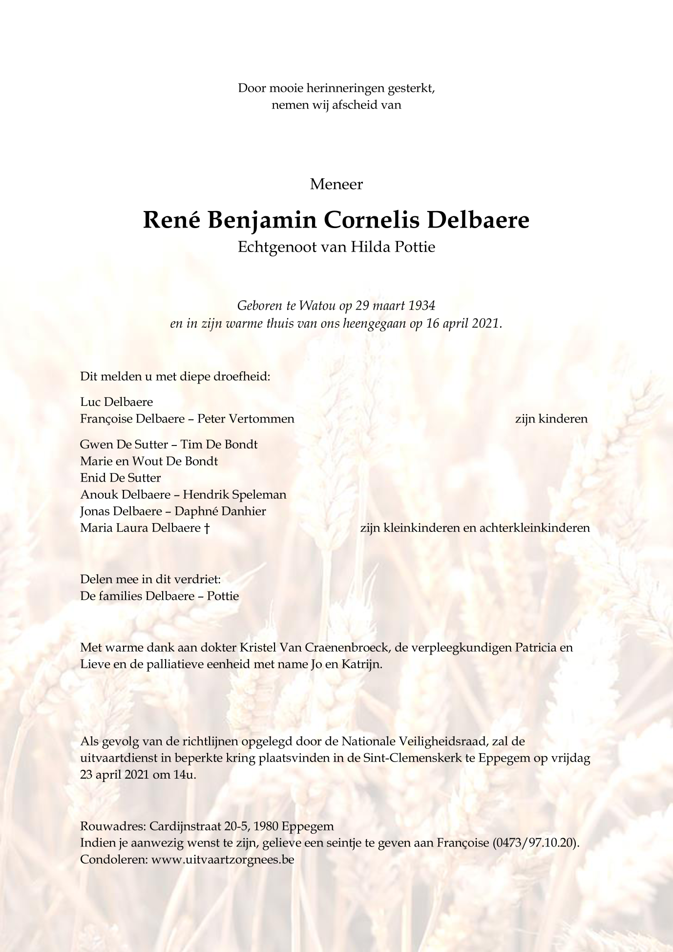 Fallecido en Eppegem (1980) el viernes, 16 de abril de 2021 a la edad de 87 años