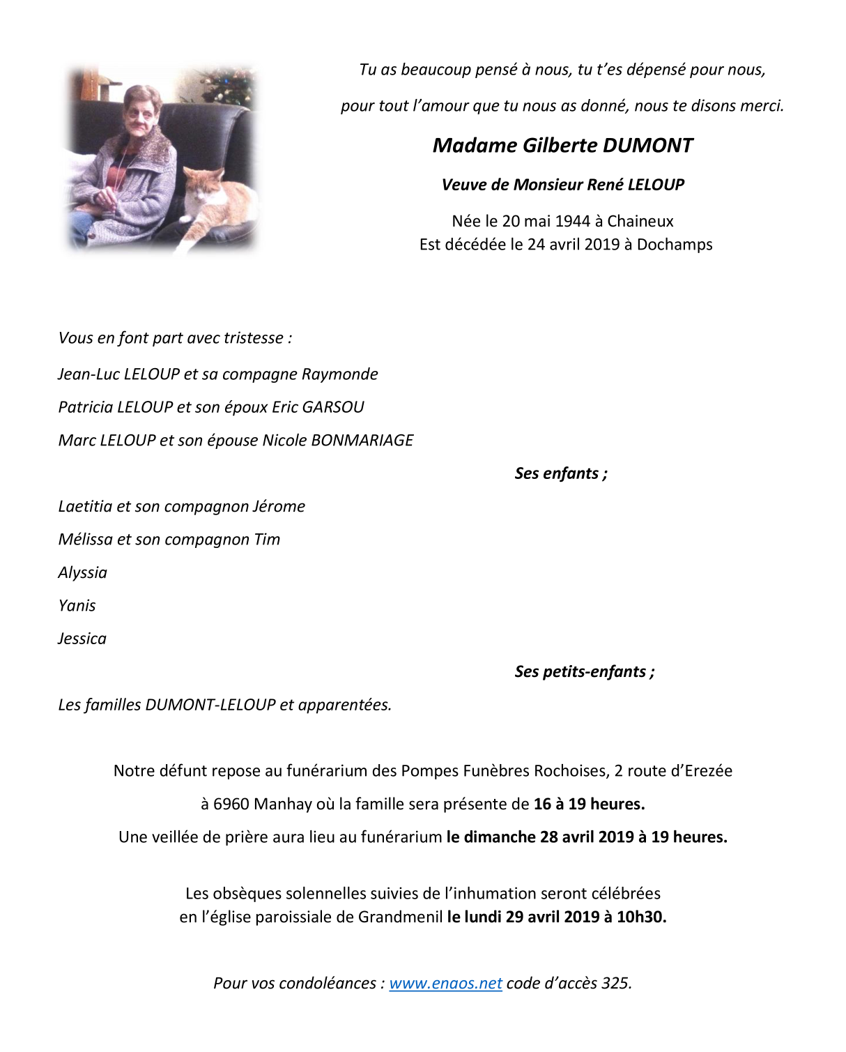 Overleden te Dochamps (6960) op woensdag 24 april 2019 op 74-jarige leeftijd