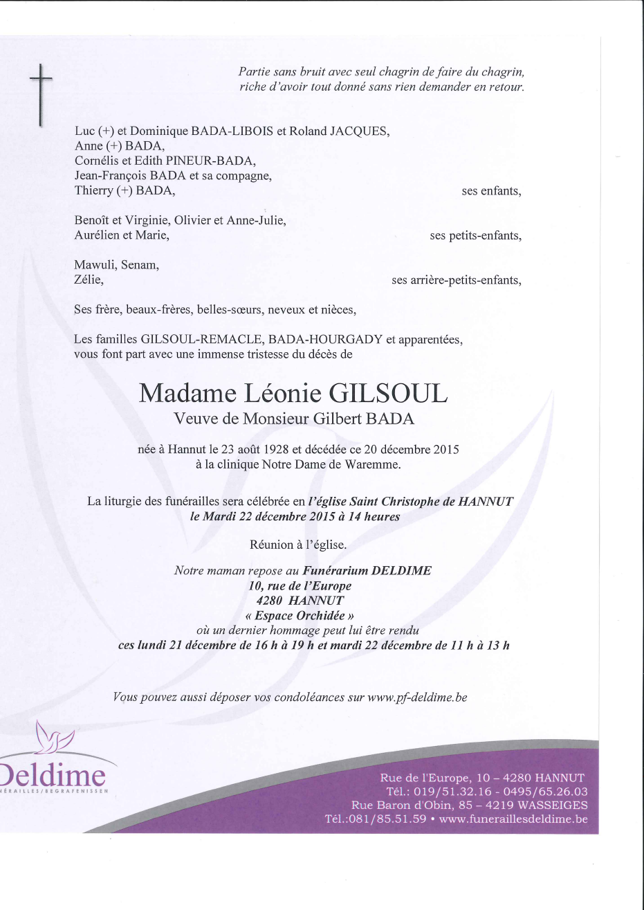 Widow of Monsieur Gilbert BADA