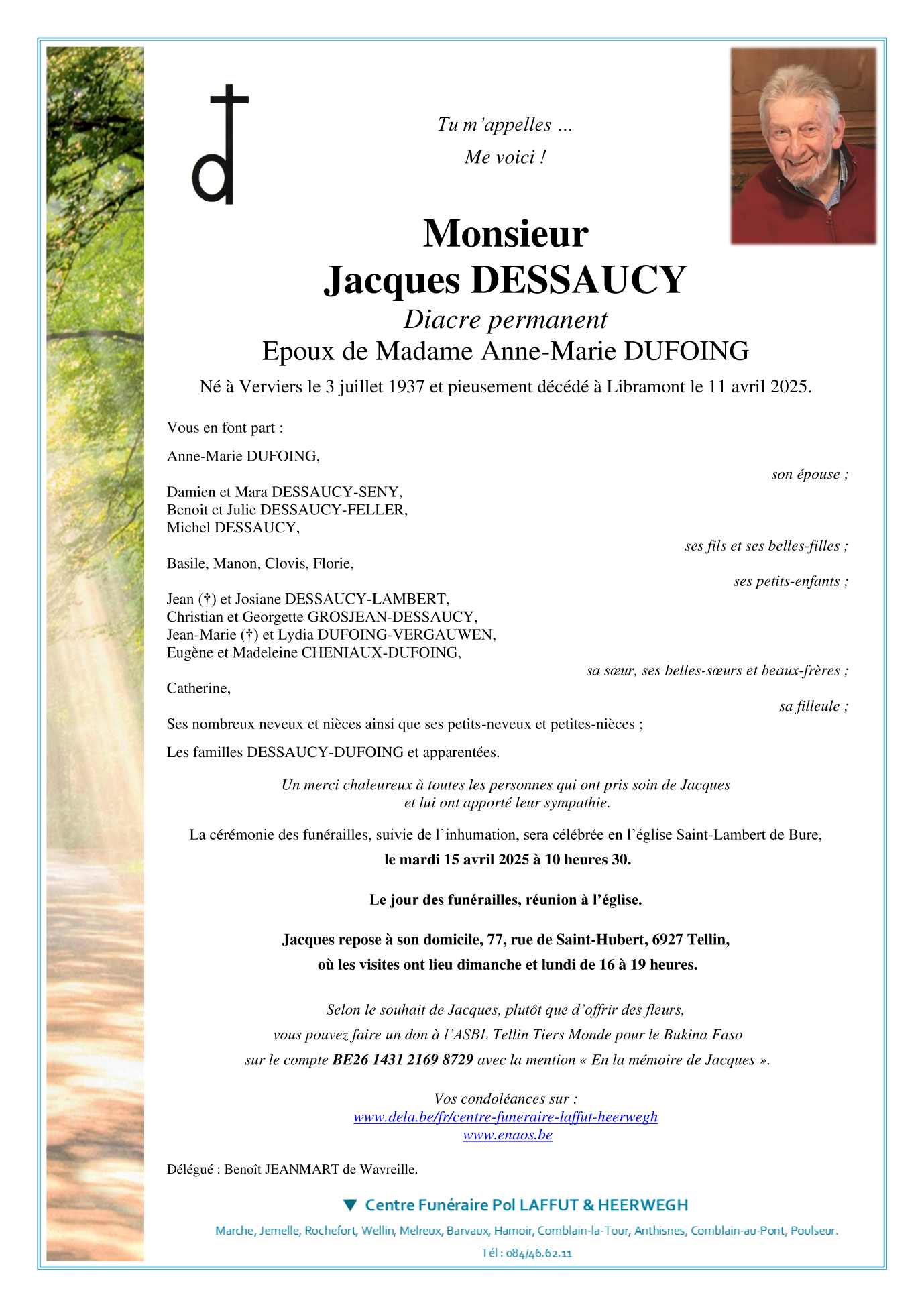Overleden te Libramont (6800) op vrijdag 11 april 2025 op 87-jarige leeftijd
