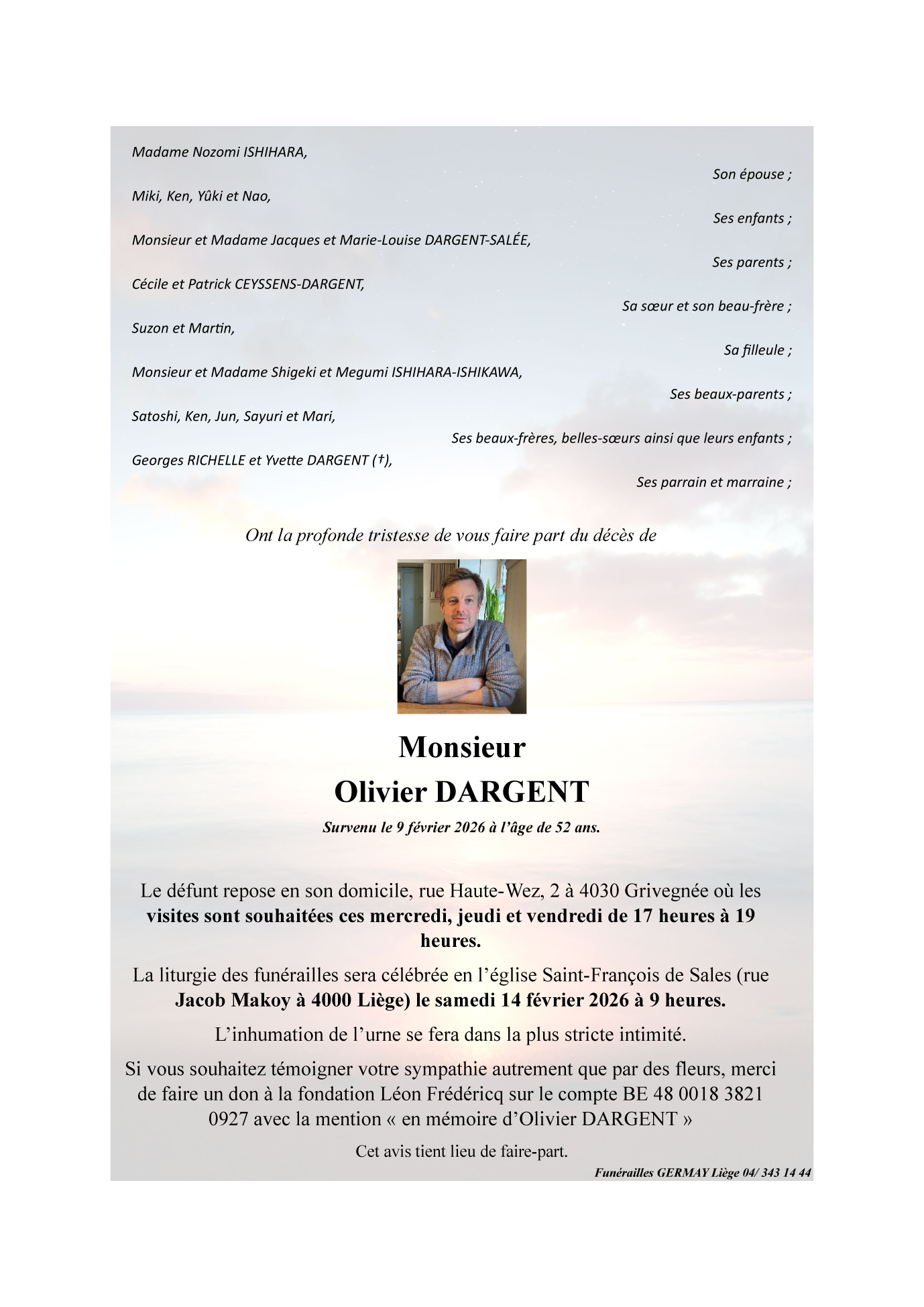 Fallecido en Liège (4000) el lunes, 9 de febrero de 2026 a la edad de 52 años