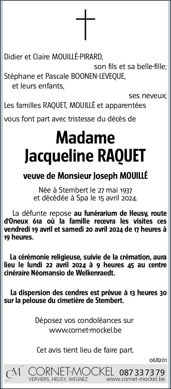 Fallecida en Spa (4900) el lunes, 15 de abril de 2024 a la edad de 86 años