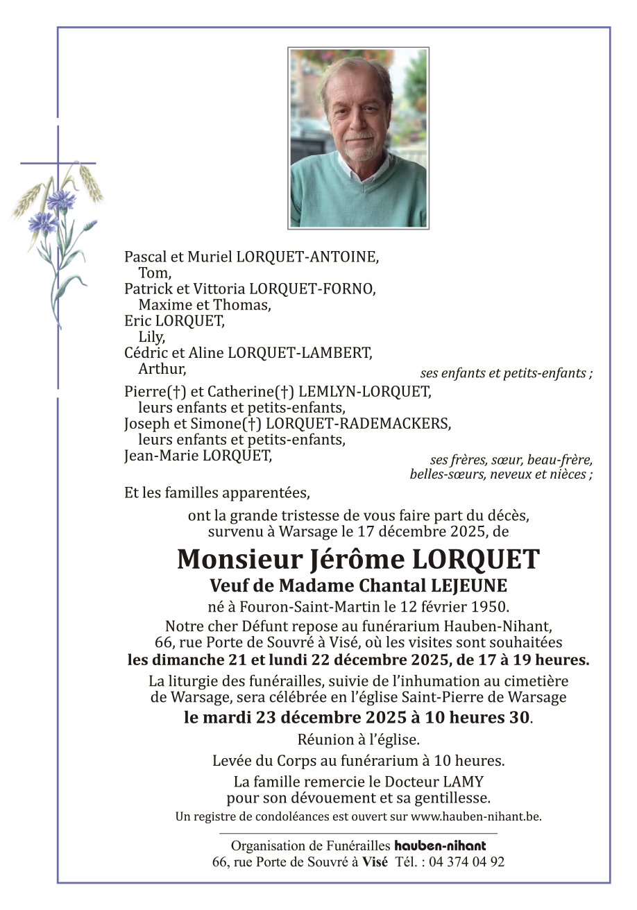 Décédé à Warsage (4608) le mercredi 17 décembre 2025 à l'âge de 75 ans