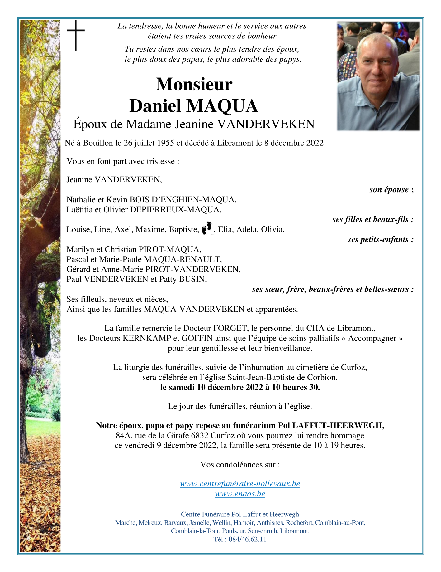 Décédé à Libramont (6800) le jeudi 8 décembre 2022 à l'âge de 67 ans
