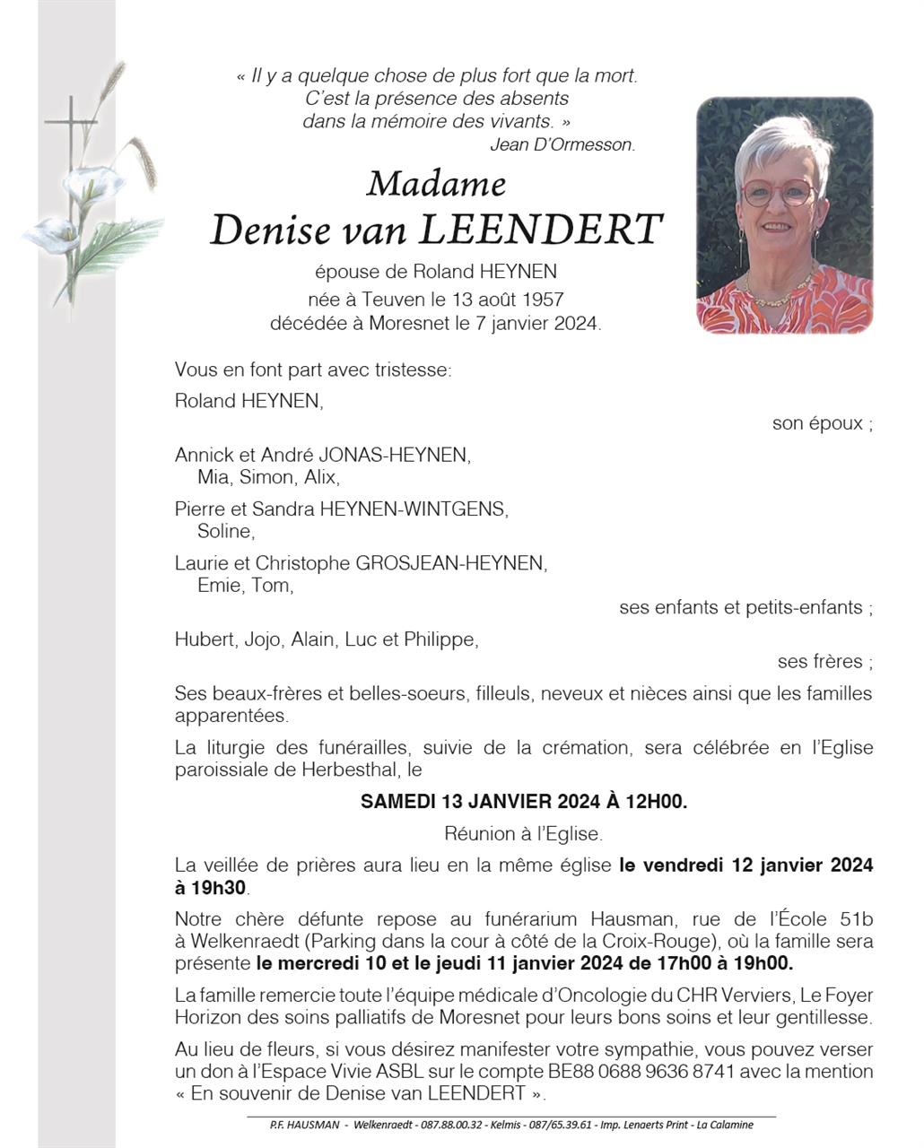 Madame Denise VAN LEENDERT