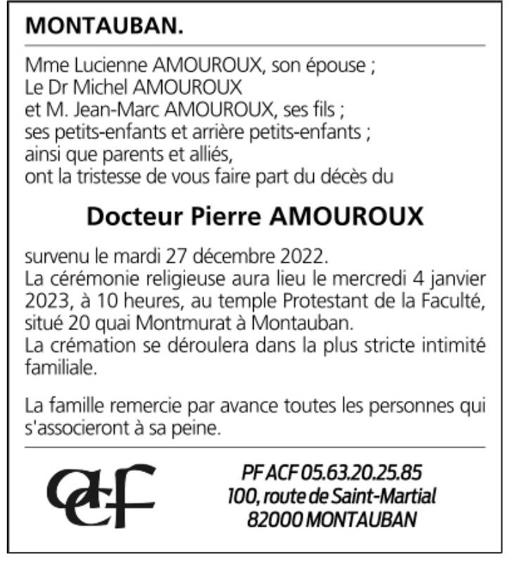 Décédé à Montauban (82000, France) le mardi 27 décembre 2022 à l'âge de 96 ans