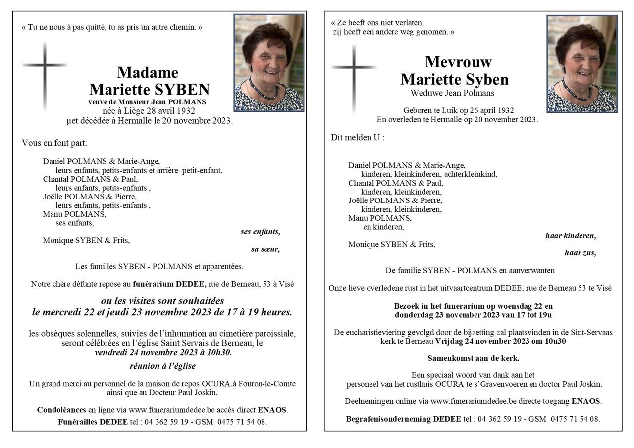 Madame Mariette SYBEN