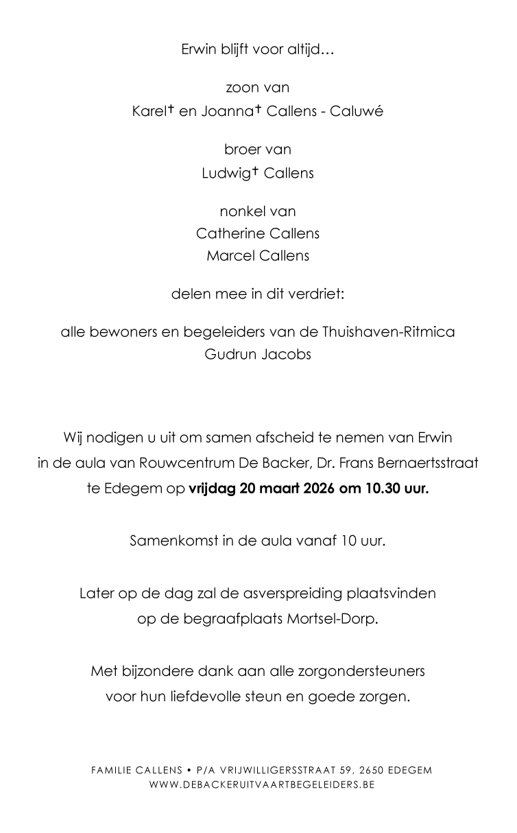 Died in Mortsel (2640) on 11 March 2026 at the age of 61 years