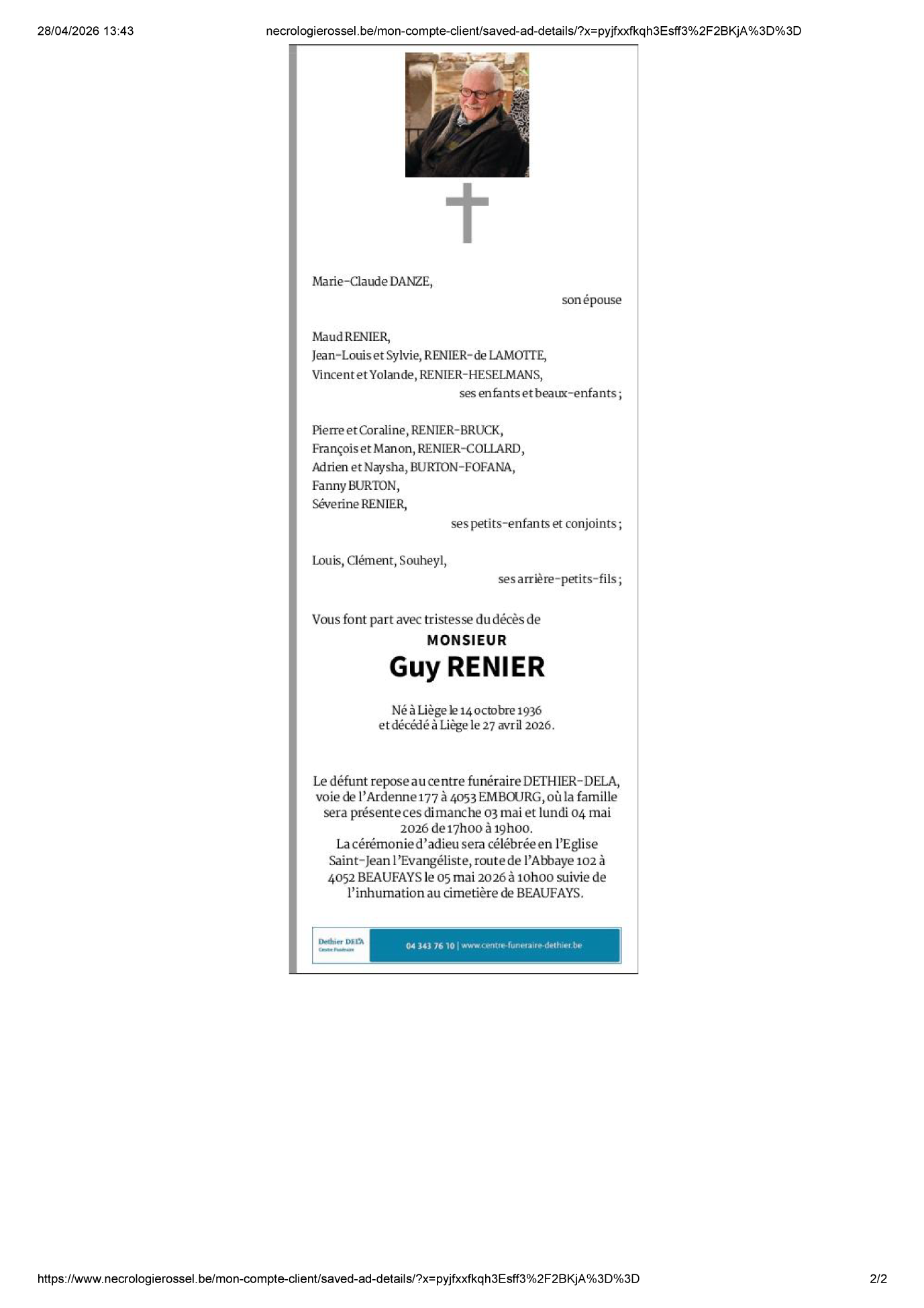 Décédé à Liège (4000) le lundi 27 avril 2026 à l'âge de 89 ans