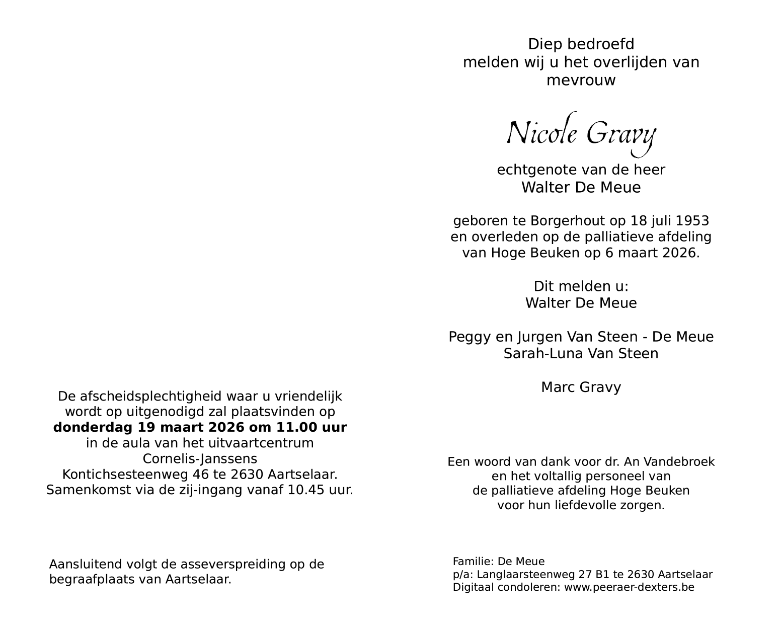 Epouse de De heer Walter De Meue