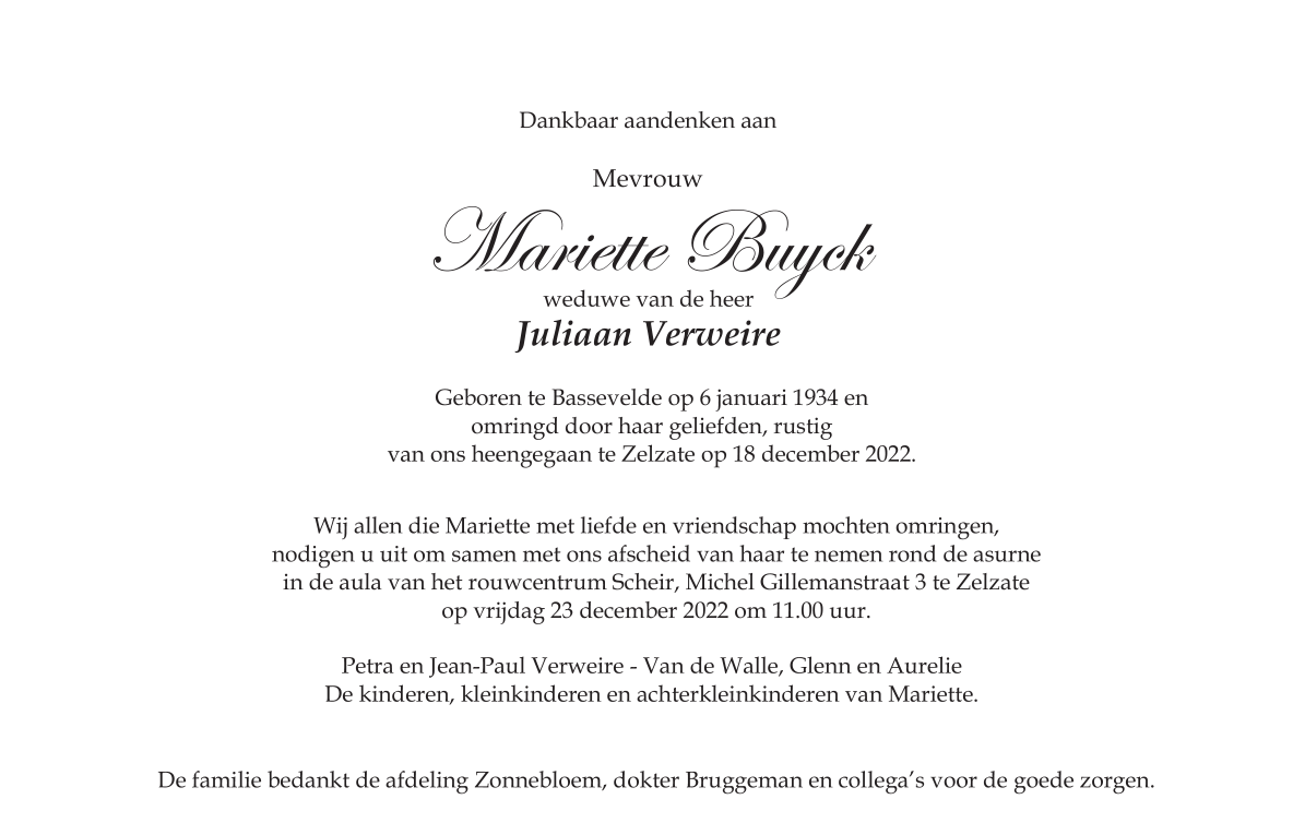 Died in Zelzate (9060) on 18 December 2022 at the age of 88 years