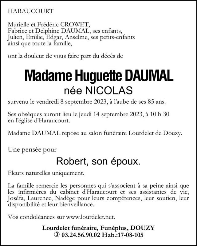 Née à Haraucourt (08450, France) le dimanche 25 septembre 1938