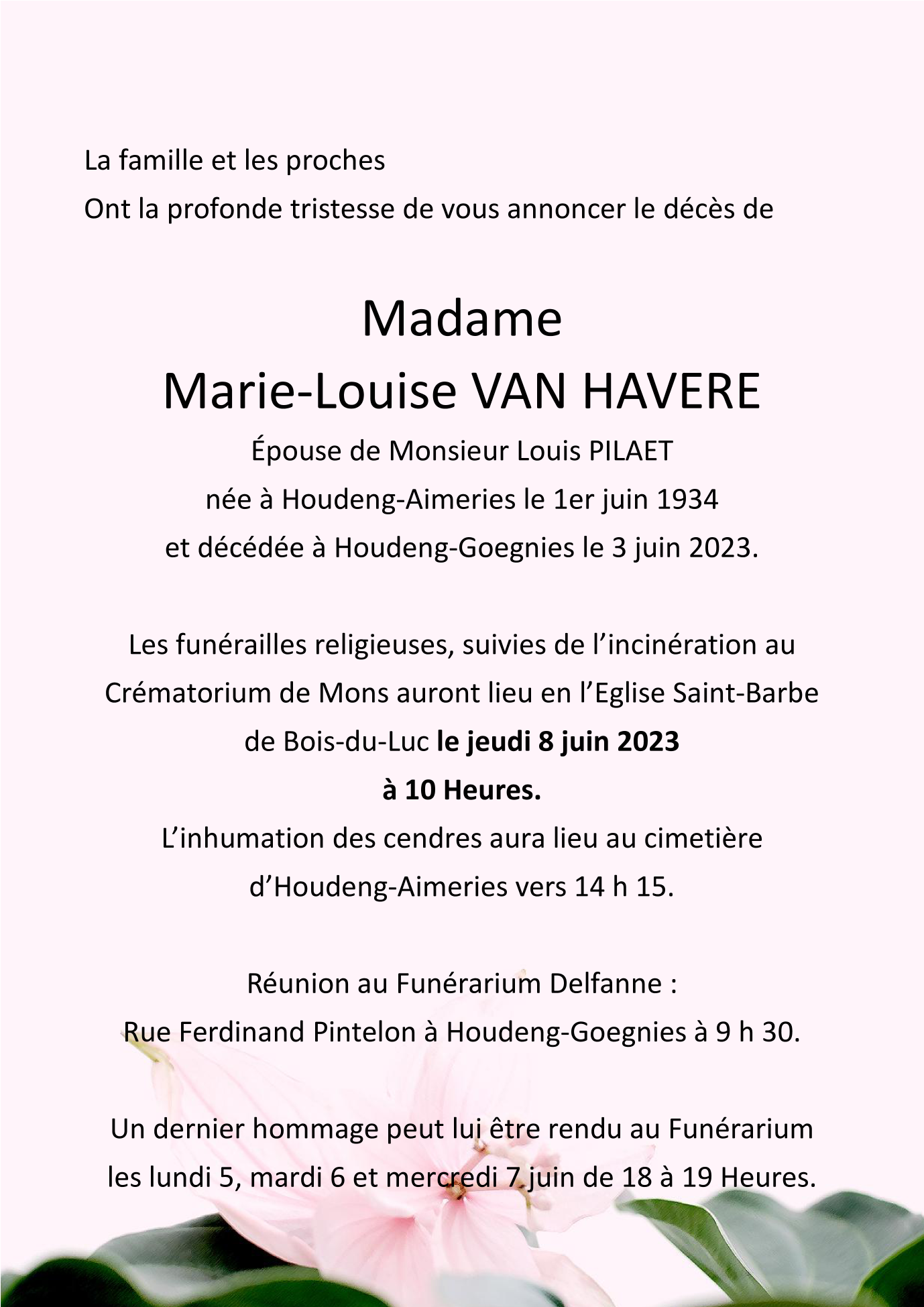 Overleden te Houdeng-Goegnies (7110) op zaterdag 3 juni 2023 op 89-jarige leeftijd