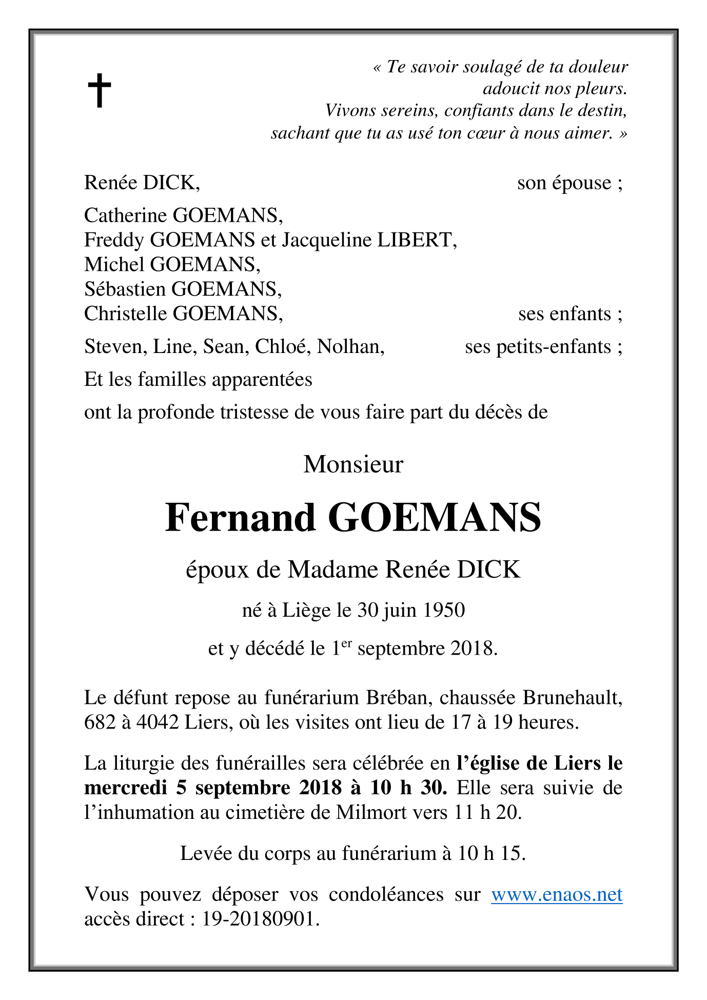 Monsieur Fernand GOEMANS époux de Renée DICK