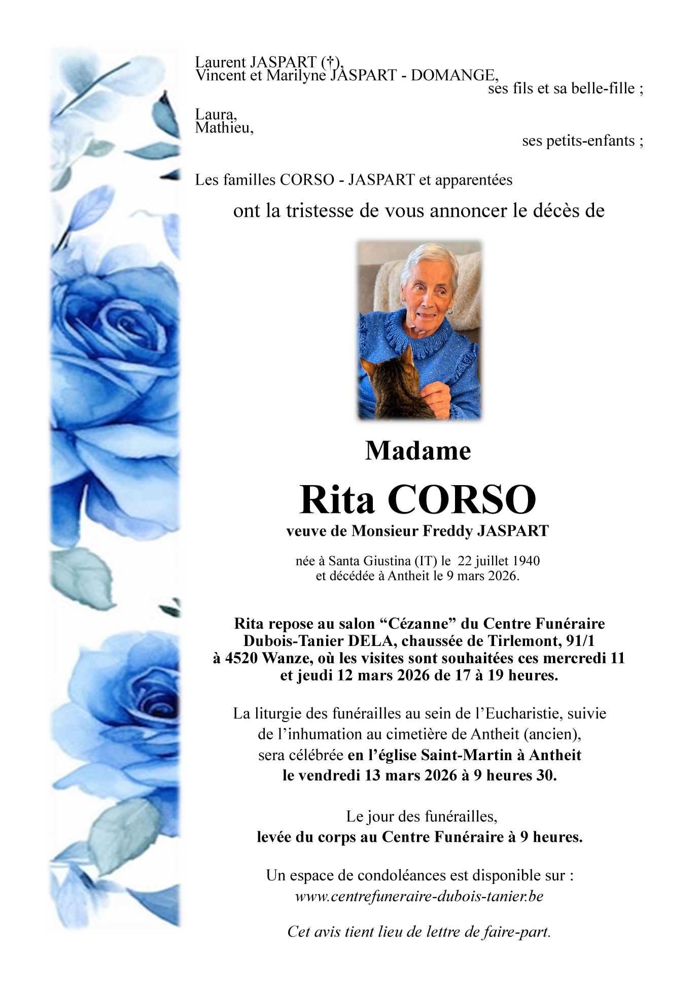 Fallecida en Antheit (4520) el lunes, 9 de marzo de 2026 a la edad de 85 años