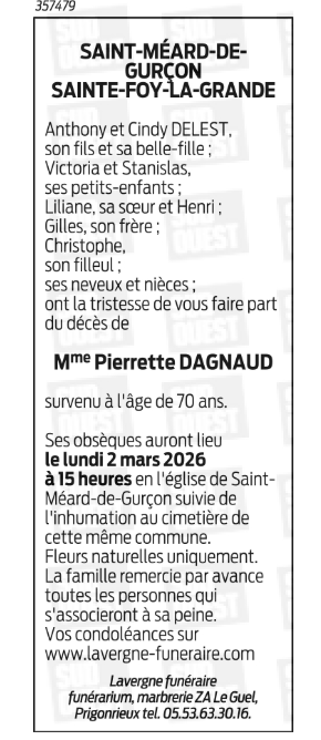 Fallecida en Boulazac (24750, Francia) el miércoles, 25 de febrero de 2026 a la edad de 70 años