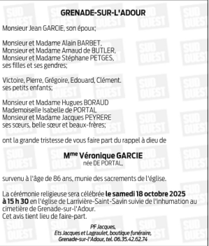Madame Véronique GARCIE née DE PORTAL