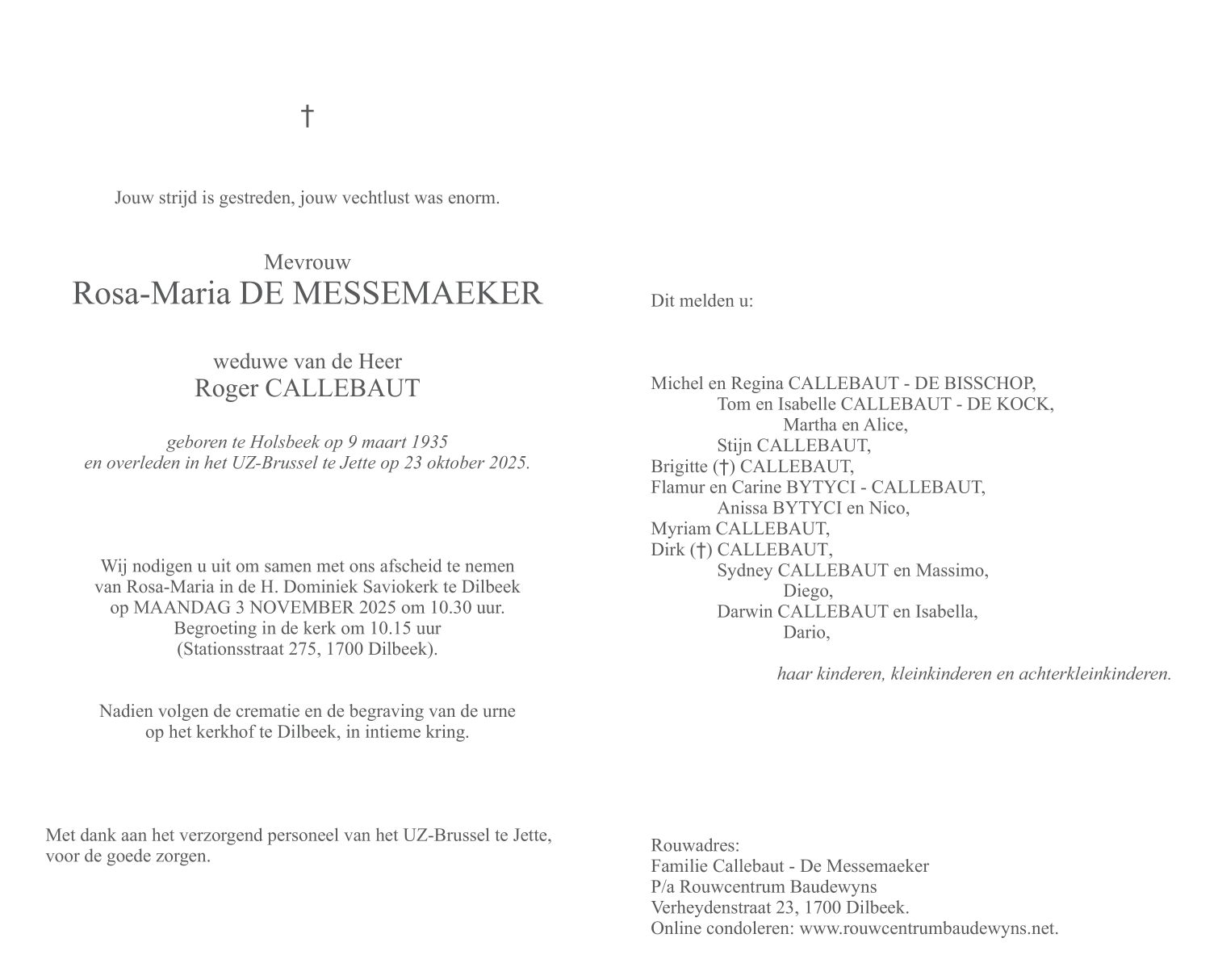 Décédée à Jette (1090) le jeudi 23 octobre 2025 à l'âge de 90 ans