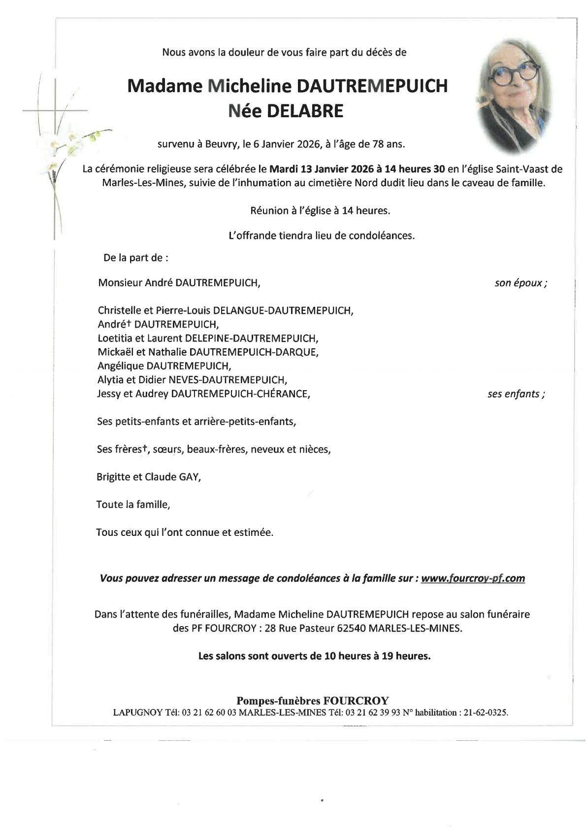 Madame Micheline DAUTREMEPUICH née DELABRE