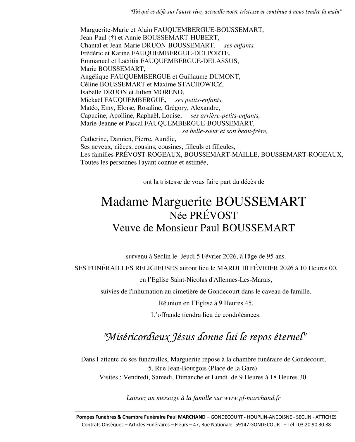 Décédée à Seclin (59113, France) le jeudi 5 février 2026 à l'âge de 95 ans