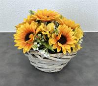 | Composition de fleurs tergal Composition de fleurs tergal dans un pot lesté en osier. Tournesols.