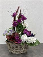 | Composition de fleurs tergal Composition de fleurs tergal dans un pot lesté en osier avec des jacinthes, œillets ...