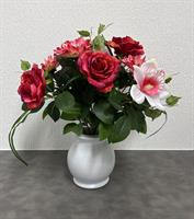 | Composition de fleurs tergal Composition de fleurs tergal dans un pot lesté avec des roses et orchidées.