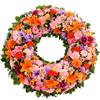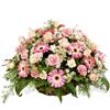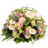 niet-contractuele foto | COUSSIN ROND Les fleurs aux couleurs tendres, associées à la vie, rendent un hommage naturel à la personne disparue.