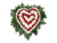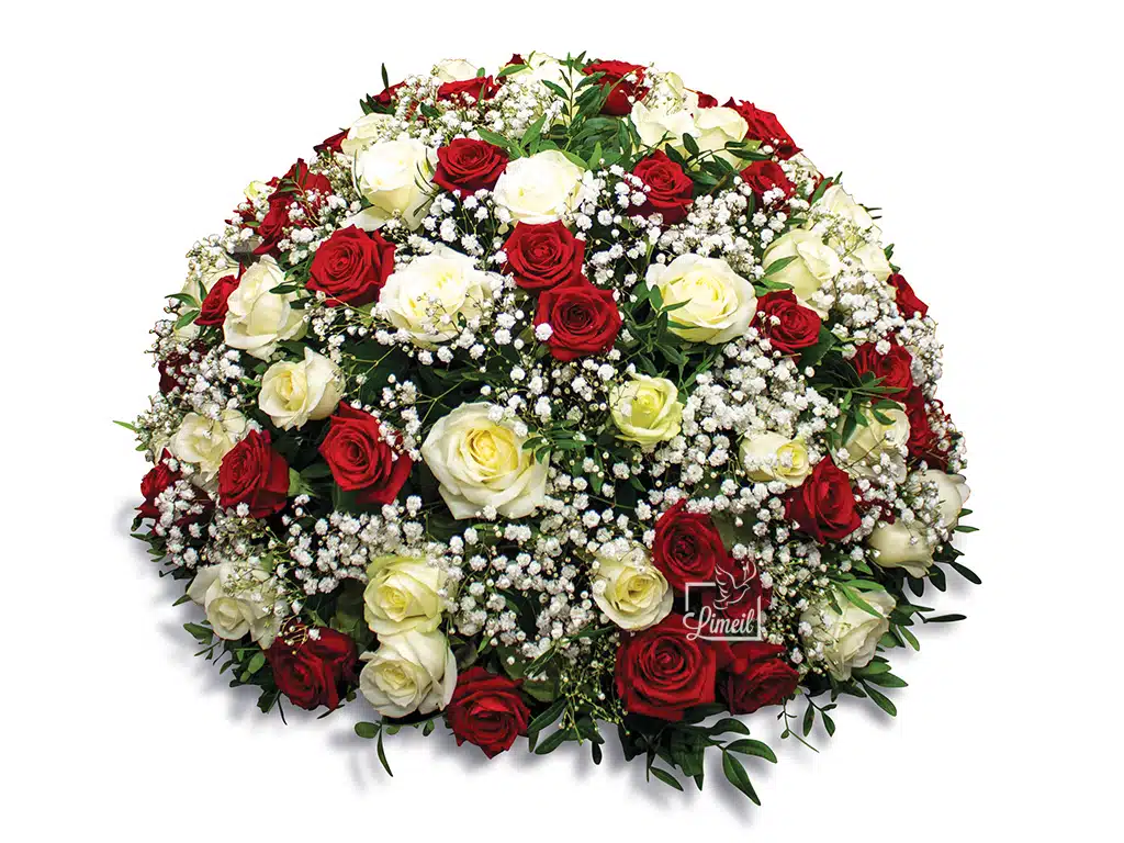 Les Pompes Funèbres vous proposent ce cœur composé de roses rouge blanches soigneusement sélectionnées. Cette composition florale sobre et raffinée exprime paix, pureté et respect, offrant une présence florale empreinte de douceur pour honorer la mémoire du défunt. Cette composition florale convient parfaitement pour les expositions du cercueil lors d’un recueillement au cours d’une cérémonie civile ou religieuse et se pose idéalement, après l‘inhumation sur la sépulture. Largeur : 45 cm Livraison gratuite dans toute l’Ile de France, uniquement les départements 75-77-78-91-92-93-94-95 Aucune livraison hors ces départements actuellement.