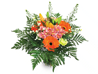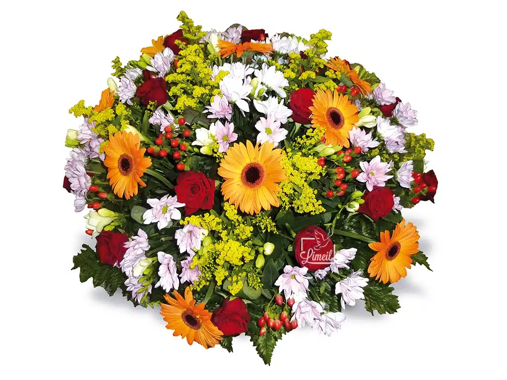 Les Pompes Funèbres LOIC vous proposent ce bouquet rond aux teintes chaleureuse d'orange, jaune et vert. Symbole de lumière et de réconfort, cette composition florale apporte un hommage sincère et apaisant pour accompagner le défunt avec délicatesse. Diamètre : 30 cm Livraison Gratuit : 75/77/78/91/92/93/94/95
