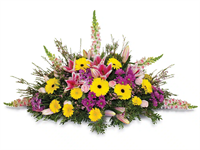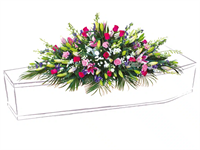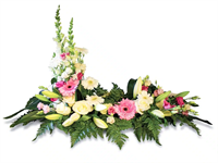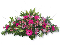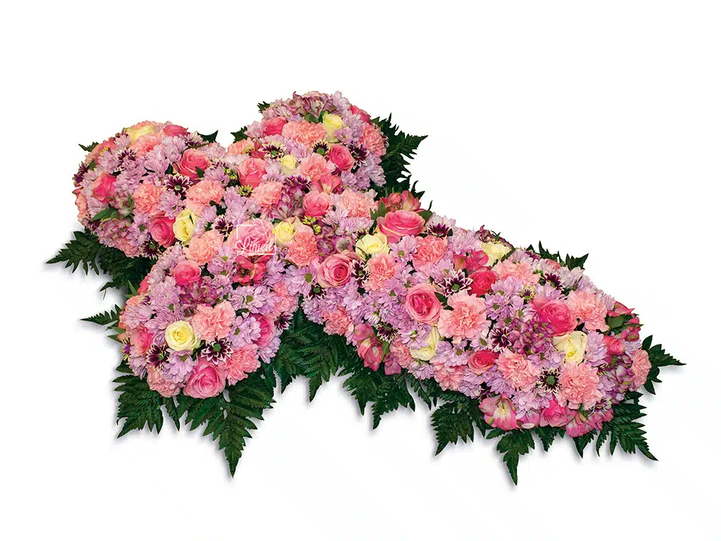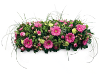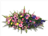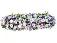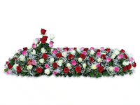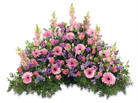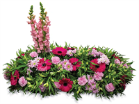 Les Pompes Funèbres LOIC vous proposent ce devant de cercueil en fleurs naturelle Gerbera rose, Rose rose, Muflier rose, Lisianthus parme, Statice mauve, Lentisque long Longueur : 80 cm Cette composition florale convient parfaitement pour les expositions du cercueil lors d’un recueillement au cours d’une cérémonie civile ou religieuse et se pose idéalement, après l’inhumation sur la sépulture. Livraison gratuite dans toute l’Ile de France, uniquement les départements 75-77-78-91-92-93-94-95 Aucune livraison hors ces départements actuellement.