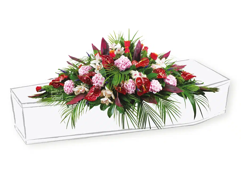 Les pompes funèbres LOIC, vous proposent ces jeté d’anthuriums en fleurs naturelles à déposer sur le cercueil. Ce type de composition est parfaite à déposer par chaque proche sur le cercueil dans un signe de dernier adieu lors d’un recueillement au cours d’une cérémonie civile ou religieuse. Livraison gratuite dans toute l’Ile de France, uniquement les départements 75-77-78-91-92-93-94-95 Aucune livraison hors ces départements actuellement.