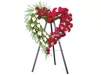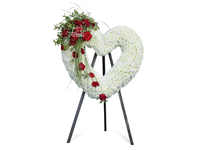 Les Pompes Funèbres vous proposent ce cœur évidé sur pieds, composé de Bonny blancs, de roses rouges, de Beargrass et de pittosporum soigneusement disposés. Cette composition florale structurée associe contraste et harmonie, offrant une présence florale sobre et marquante pour témoigner d’un hommage profond et respectueux. Cette composition florale convient parfaitement pour les expositions du cercueil lors d’un recueillement au cours d’une cérémonie civile ou religieuse et se pose idéalement, après l’inhumation sur la sépulture. Livraison Gratuit: 75/77/78/91/92/93/94/95