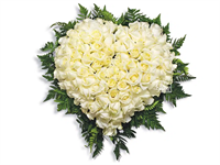 Les Pompes Funèbres vous proposent ce cœur en roses blanches, symbole de tendresse et de sérénité pour accompagner un dernier hommage. Cette composition florale convient parfaitement pour les expositions du cercueil lors d’un recueillement au cours d’une cérémonie civile ou religieuse et se pose idéalement, après l’inhumation sur la sépulture. Largeur: 45cm Choix de couleurs : Rouge, Blanc, Rose, Orange, Jaune