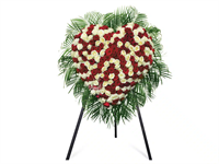 Les Pompes Funèbres vous proposent ce cœur sur pieds d’une hauteur d’environ 160 cm, composé de roses rouges et blanches harmonieusement disposées et entourées d’un feuillage décoratif. Cette composition florale de grande prestance marque un hommage fort et solennel, témoignant d’un profond attachement et d’un respect sincère. Cette composition florale convient parfaitement pour les expositions du cercueil lors d’un recueillement au cours d’une cérémonie civile ou religieuse et se pose idéalement, après l’inhumation sur la sépulture. Livraison gratuite dans toute l’Ile de France, uniquement les départements 75-77-78-91-92-93-94-95 Aucune livraison hors ces départements actuellement.