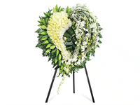 Les Pompes Funèbres LOIC vous proposent cette élégante composition florale en forme de cœur, symbole universel d’amour, de respect et de souvenir éternel. Réalisée dans des tons blancs et verts, cette pièce funéraire associe avec harmonie des roses blanches, des orchidées délicates, des fleurs blanches raffinées et un feuillage généreux soigneusement travaillé. Le contraste subtil entre la pureté du blanc et la fraîcheur du vert confère à l’ensemble une atmosphère à la fois apaisante, solennelle et profondément respectueuse. Cette composition florale convient parfaitement pour les expositions du cercueil lors d’un recueillement au cours d’une cérémonie civile ou religieuse et se pose idéalement, après l’inhumation sur la sépulture. Livraison gratuite dans toute l’Ile de France, uniquement les départements 75-77-78-91-92-93-94-95 Aucune livraison hors ces départements actuellement.