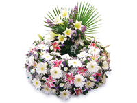 Les Pompes Funèbres LOIC vous proposent ce dessus de cercueil rond en fleurs naturelle en fleurs naturelle, composé de Oeillet rose, Rose saumon, Rose rouge, Muflier rose, Aconite, Ruscus d’Italie, Matricaire blanc, Bonny lilas, Bonny blanc, Statice bleu, Salal. Cette composition florale convient parfaitement pour les expositions du cercueil lors d’un recueillement au cours d’une cérémonie civile ou religieuse et se pose idéalement, après l’inhumation sur la sépulture. Livraison gratuite dans toute l’Ile de France, uniquement les départements 75-77-78-91-92-93-94-95 Aucune livraison hors ces départements actuellement.