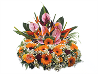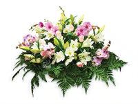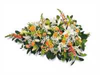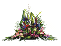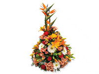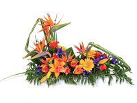 Les Pompes Funèbres LOIC vous proposent ce devant de cercueil en fleurs naturelle composé de Lys orange, Strelitzia, Anthurium rose, Cymbidium blanc 12 fleurons Cette composition florale convient parfaitement pour les expositions du cercueil lors d’un recueillement au cours d’une cérémonie civile ou religieuse et se pose idéalement, après l’inhumation sur la sépulture. Livraison gratuite dans toute l’Ile de France, uniquement les départements 75-77-78-91-92-93-94-95 Aucune livraison hors ces départements actuellement.