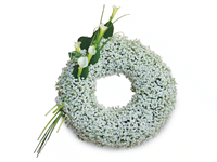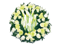 Les pompes funèbres LOIC, vous proposent cette couronne à plat en fleurs naturelles composé de : Gerbera blanc, Gypsophile, Rose blanche, Lys star, Statice bleu, Delphinium bleu, Lentisque, Lys royal Cette composition florale convient parfaitement pour les expositions du cercueil lors d’un recueillement au cours d’une cérémonie civile ou religieuse et se pose idéalement, après l’inhumation sur la sépulture. Diamètre : 80 cm Livraison gratuite dans toute l’Ile de France, uniquement les départements 75-77-78-91-92-93-94-95 Aucune livraison hors ces départements actuellement.
