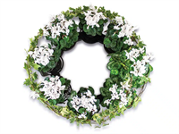 Les pompes funèbres LOIC, vous proposent cette couronne de plantes composée de huit pots dans les tons blancs. (Cyclamen pot Ø 10 cm, Traine de lierre) Cette couronne de plantes conviendra parfaitement pour tout type de cérémonie. Couronne de plantes fleurs blanche proposé par les pompes funèbres loic Elle pourra ensuite très facilement être déposée sur la sépulture après une inhumation par exemple. Vous avez aussi la possibilité de replanter les pots individuellement dans un jardin. Livraison gratuite dans toute l’Ile de France, uniquement les départements 75-77-78-91-92-93-94-95 Aucune livraison hors ces départements actuellement.