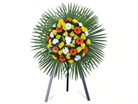 Les pompes funèbres LOIC, vous proposent cette couronne sur pieds composé de Rose orange, Solidalgo, Bonny jaune, Bonny orange, Gerbera orange pâle, Lys orange, Lentisque, Gypsophile, Muflier jaune Cette composition florale convient parfaitement pour les expositions du cercueil lors d’un recueillement au cours d’une cérémonie civile ou religieuse. Merci de nous contacter avant de passer commande. L’exotique peut varier selon l’arrivage et la saison. Livraison gratuite dans toute l’Ile de France, uniquement les départements 75-77-78-91-92-93-94-95 Aucune livraison hors ces départements actuellement.