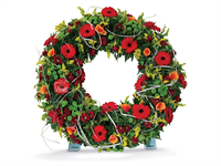 es pompes funèbres LOIC, vous proposent cette couronne sur pieds composé de : Gerbera rouge, Bonny rouge, Rose orange, Solidalgo, Santini vert, Lentisque Cette composition florale convient parfaitement pour les expositions du cercueil lors d’un recueillement au cours d’une cérémonie civile ou religieuse. Merci de nous contacter avant de passer commande. L’exotique peut varier selon l’arrivage et la saison. Cette composition dispose d’un plateau pouvant accueillir un cadre photo ou une urne en son centre. Livraison gratuite dans toute l’Ile de France, uniquement les départements 75-77-78-91-92-93-94-95 Aucune livraison hors ces départements actuellement.