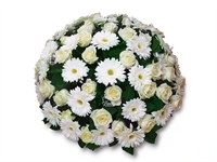 Les pompes funèbres LOIC, vous proposent cette composition en coussin rond de fleurs naturelles composés de Gerbera blanc, Rose blanche, Lentisque, pour être déposée sur le cercueil. Diamètre : 40 cm Cette composition florale convient parfaitement pour les expositions du cercueil lors d’un recueillement au cours d’une cérémonie civile ou religieuse et se pose idéalement, après l’inhumation sur la sépulture. Livraison gratuite dans toute l’Ile de France, uniquement les départements 75-77-78-91-92-93-94-95 Aucune livraison hors ces départements actuellement.