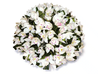 Les pompes funèbres LOIC, vous proposent cette composition en coussin rond de fleurs naturelles composés de Cymbidium blanc 12 fleurons, Lentisque, pour être déposée sur le cercueil. Merci de nous contacter avant de passer commande afin de s'assurer de la disponibilité du cymbidium. Diamètre : 45cm Cette composition florale convient parfaitement pour les expositions du cercueil lors d’un recueillement au cours d’une cérémonie civile ou religieuse et se pose idéalement, après l’inhumation sur la sépulture.