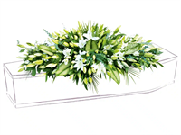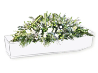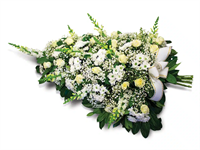 Dessus de cercueil en fleurs naturelle composé de Rose blanche, Lisianthus blanc, Lys multi blanc, Dendro blanc, Oeillet blanc, Aster blanche, Muflier blanc, Anthurium blanc, Lentisque, Pandanus, Eucalyptus. Cette composition florale convient parfaitement pour les expositions du cercueil lors d’un recueillement au cours d’une cérémonie civile ou religieuse et se pose idéalement, après l’inhumation sur la sépulture. Livraison gratuite dans toute l’Ile de France, uniquement les départements 75-77-78-91-92-93-94-95 Aucune livraison hors ces départements actuellement.